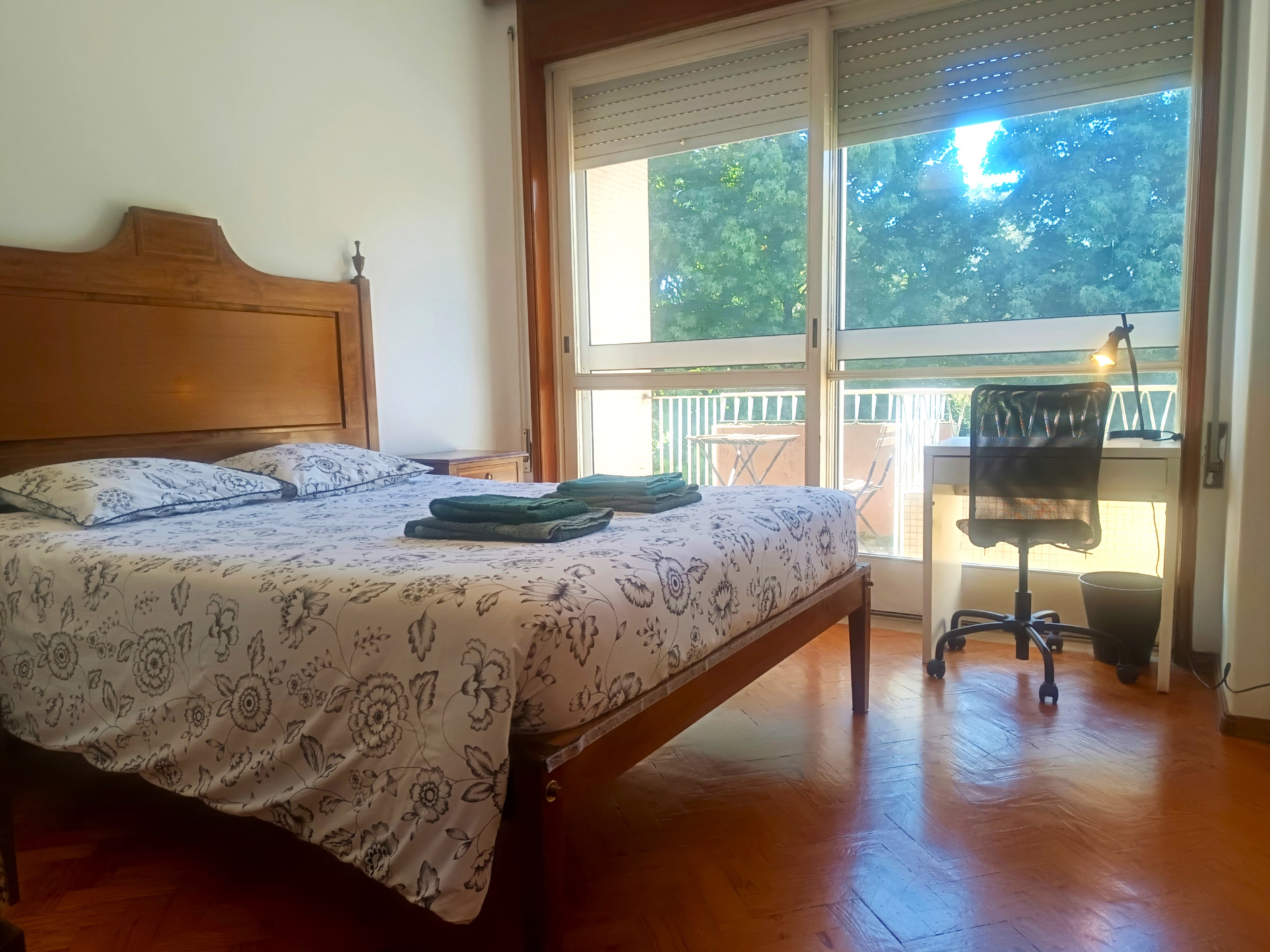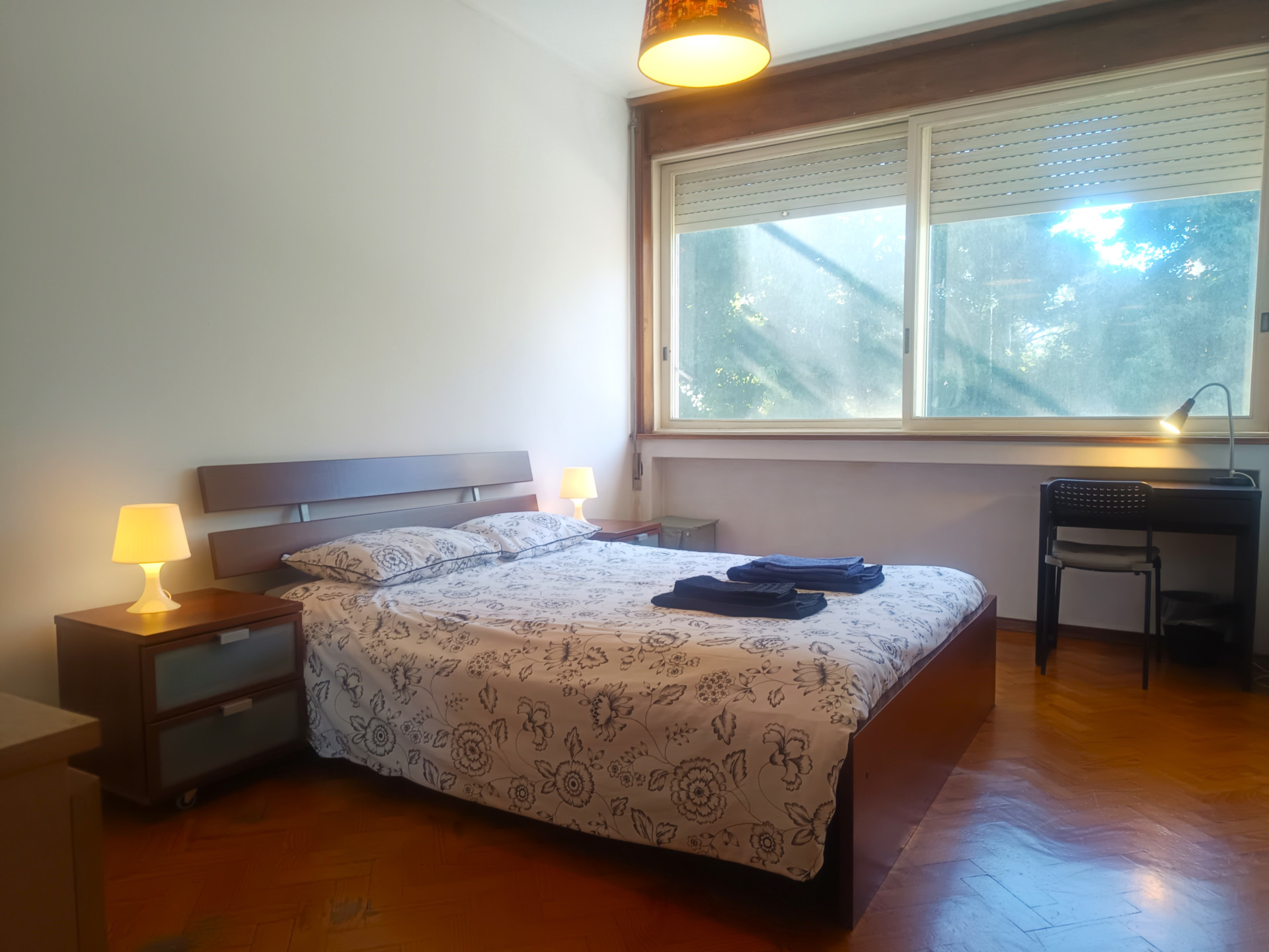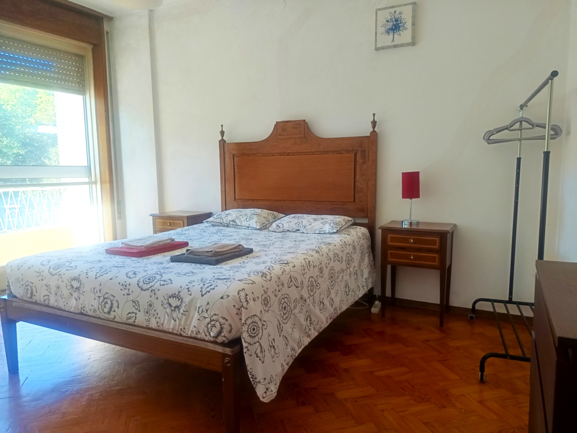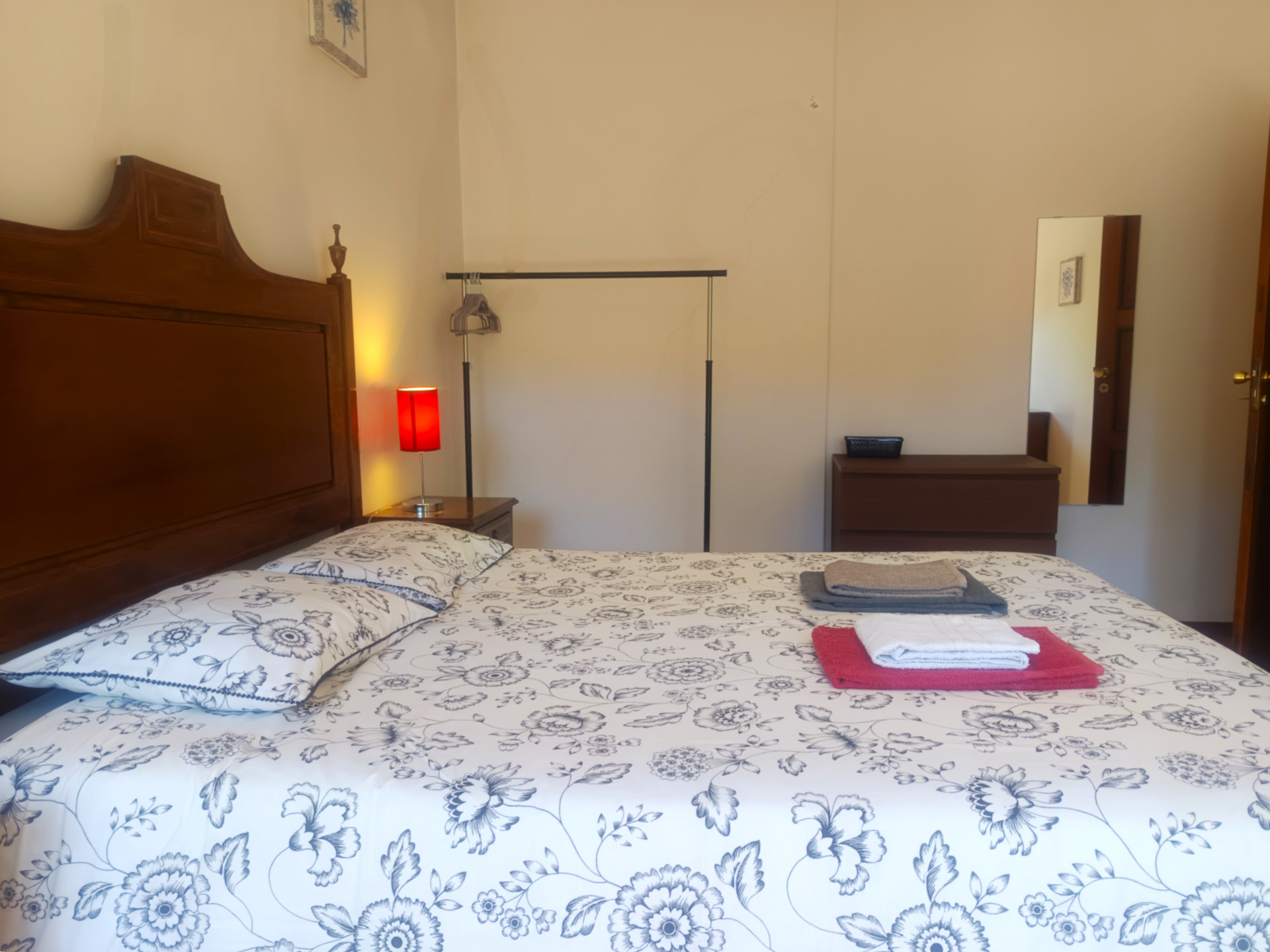 O quarto tem uma cama de casal (a roupa de cama é fornecida), secretaria, varão com cruzetas, cómoda, aquecedor elétrico, varanda e uma área de 18 metros quadrados.