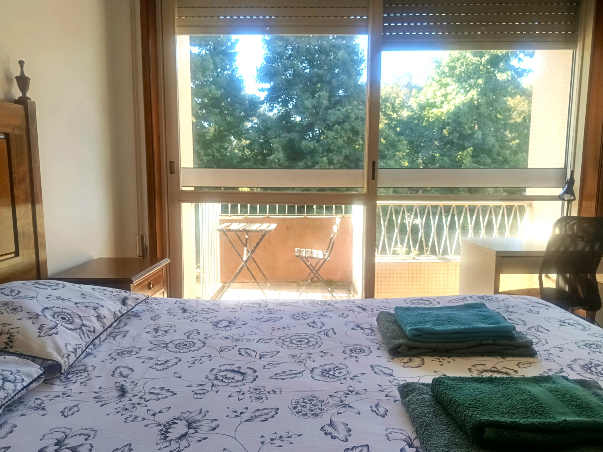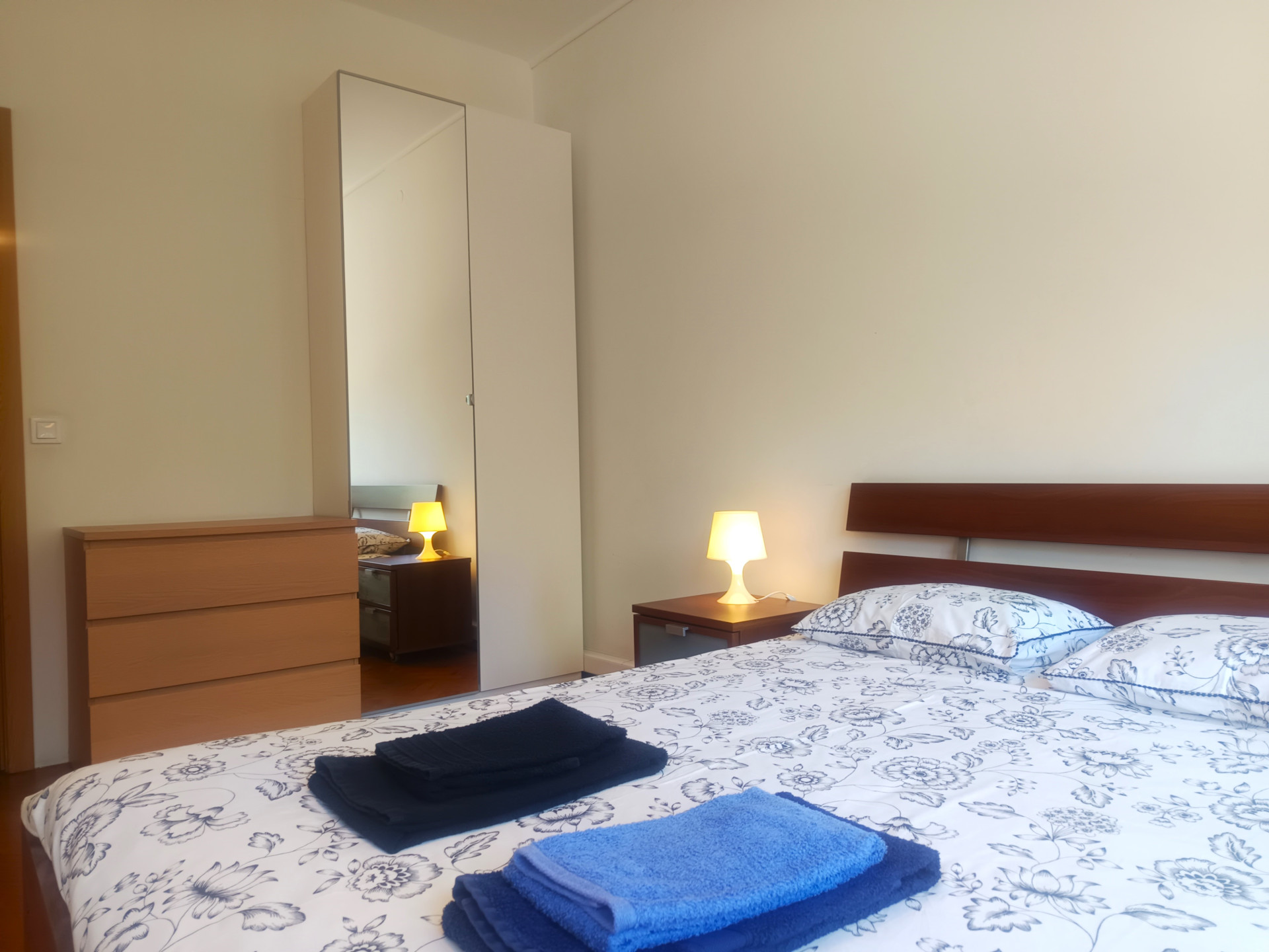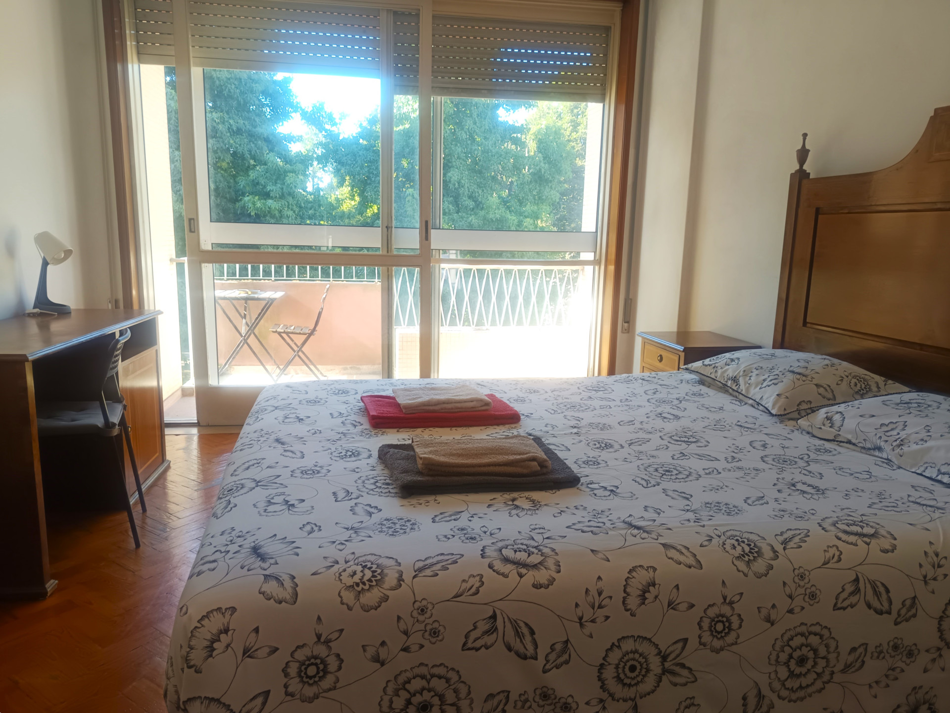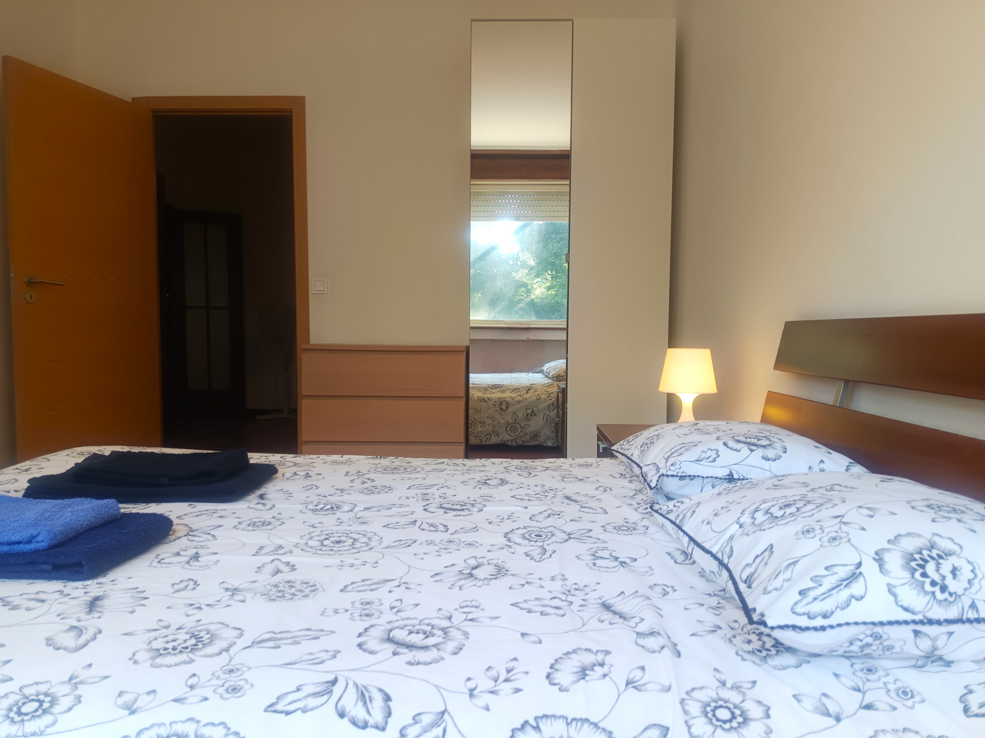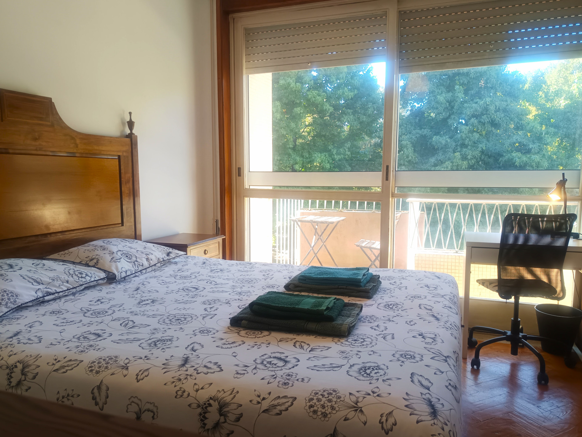 O quarto tem uma cama de casal (a roupa de cama é fornecida), secretaria, varão com cruzetas, cómoda, aquecedor elétrico, varanda e uma área de 18 metros quadrados.