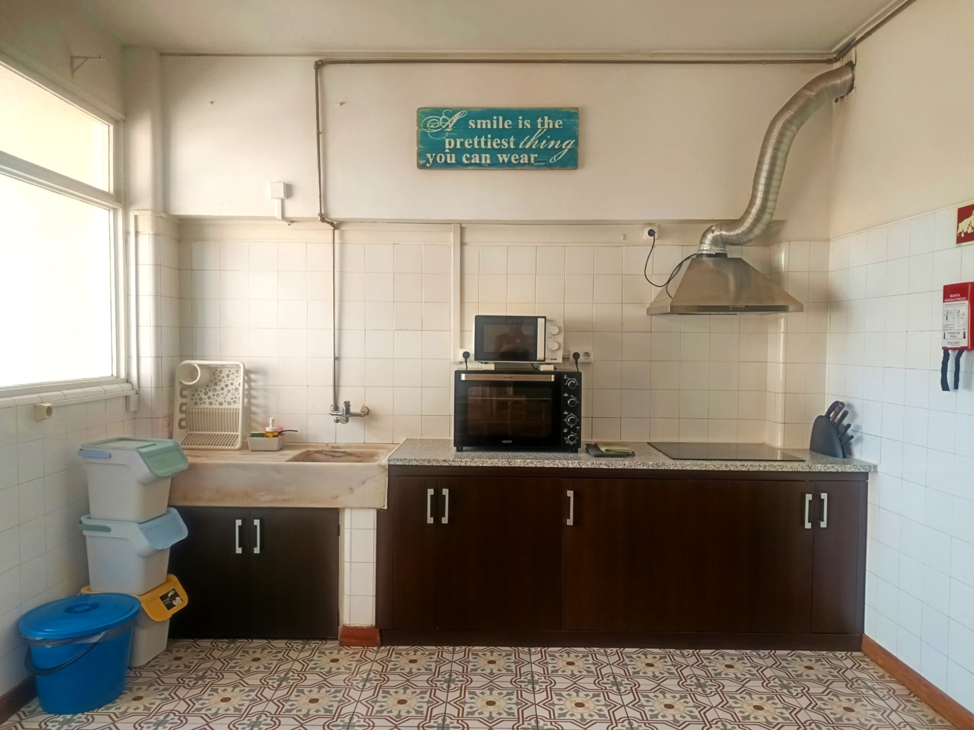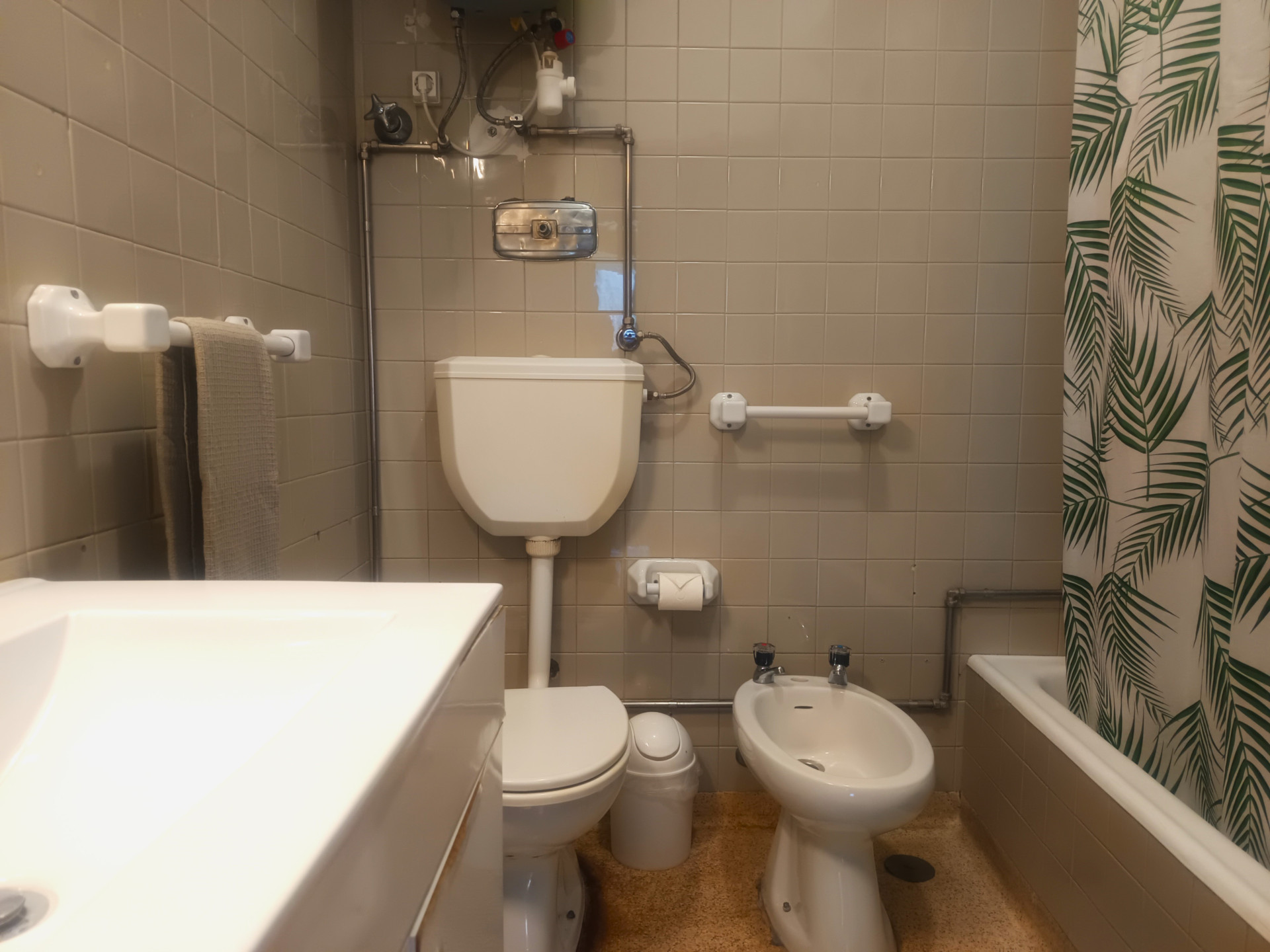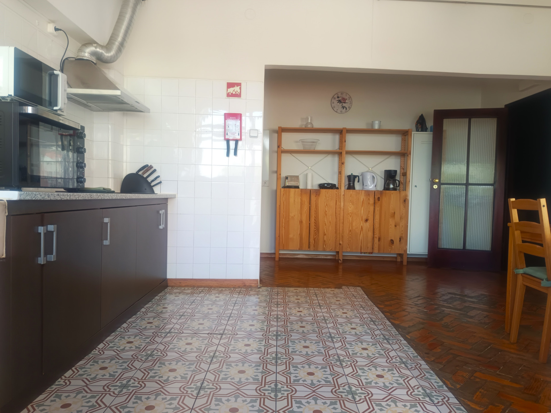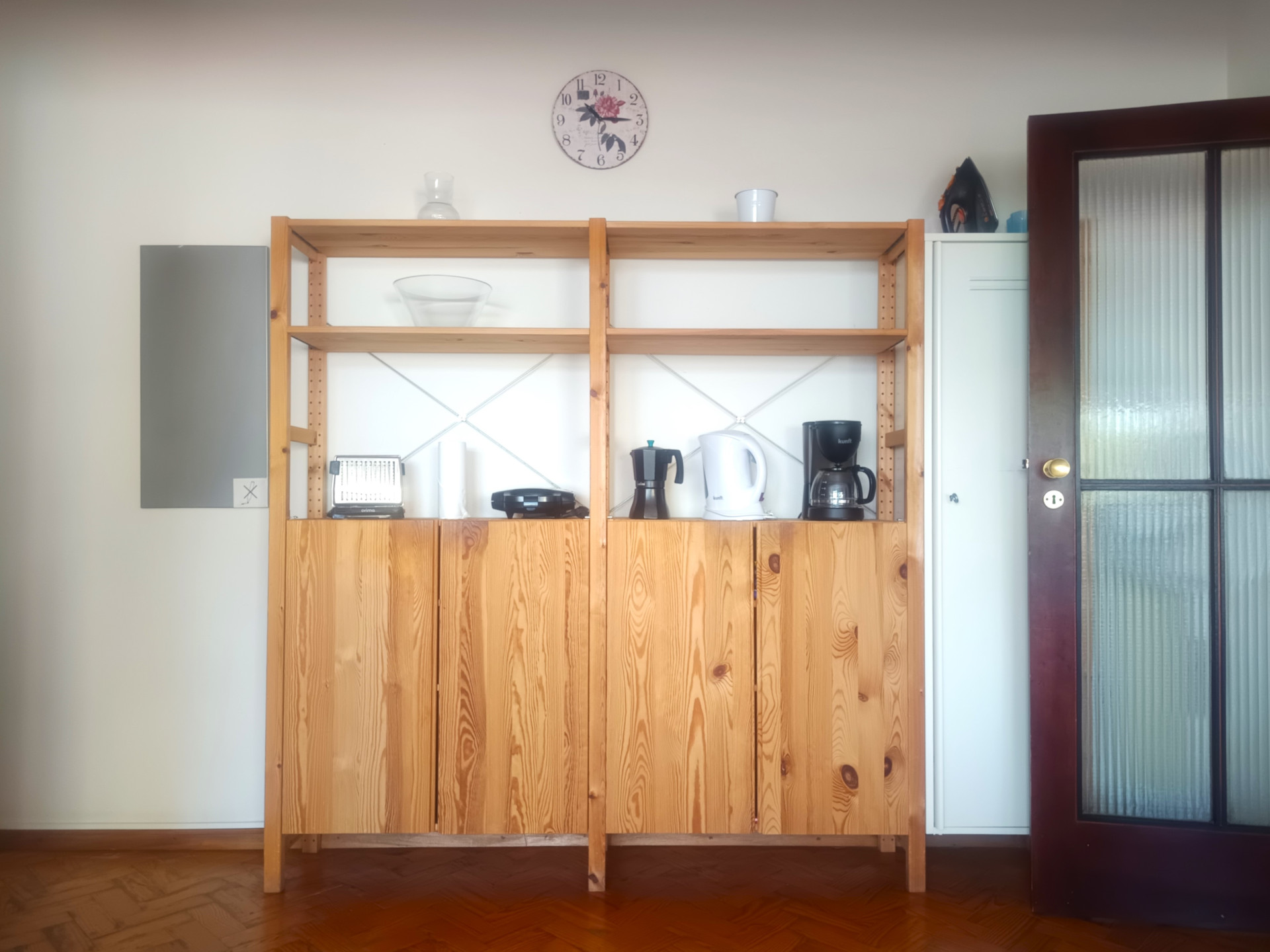 O quarto tem uma cama de casal (a roupa de cama é fornecida), secretaria, varão com cruzetas, cómoda, aquecedor elétrico, varanda e uma área de 18 metros quadrados.