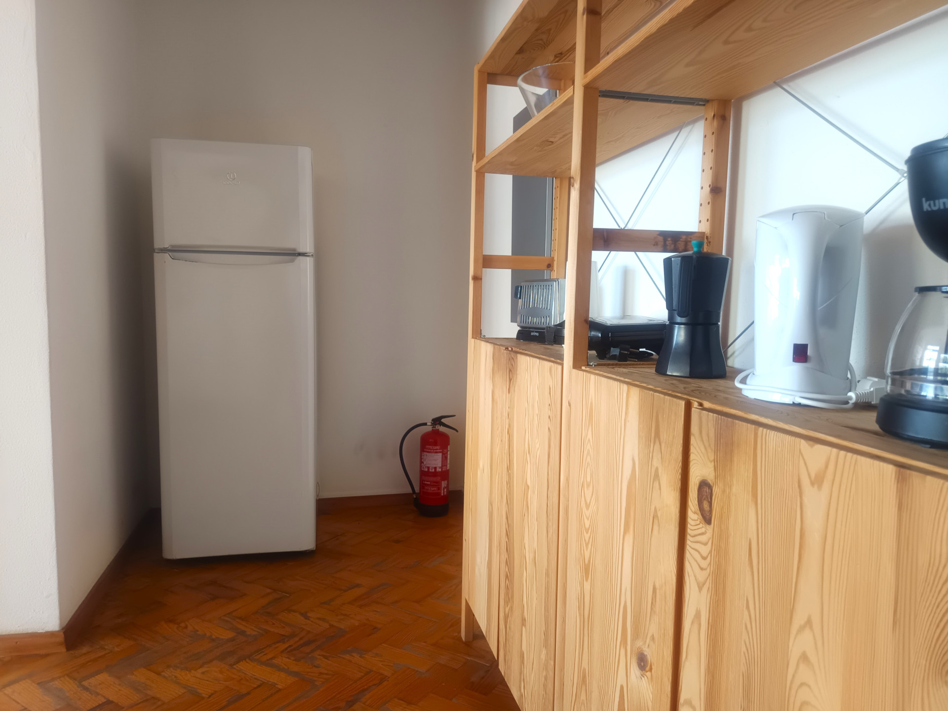 O quarto tem uma cama de casal (a roupa de cama é fornecida), secretaria, varão com cruzetas, cómoda, aquecedor elétrico, varanda e uma área de 17 metros quadrados.
